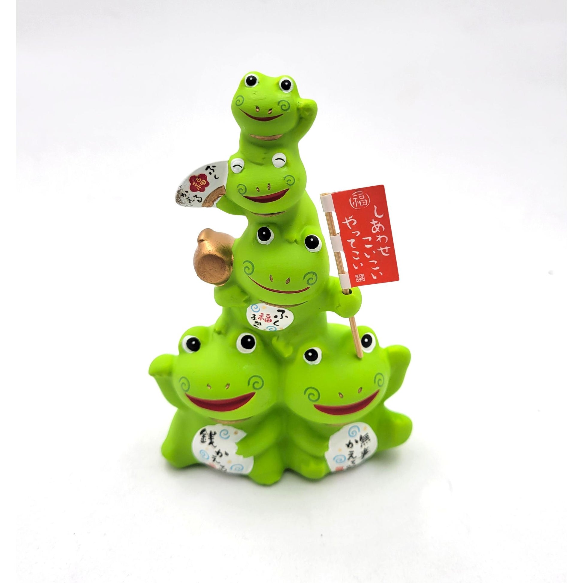 With their cheerful expressions and harmonious posture, these stacked frogs (a play on "fukugasane," meaning "piling up happiness") convey a positive and heartwarming message. Ideal as a decorative object or a symbolic gift, this figurine will find its perfect place in an entryway, an office, or a space dedicated to lucky charms.