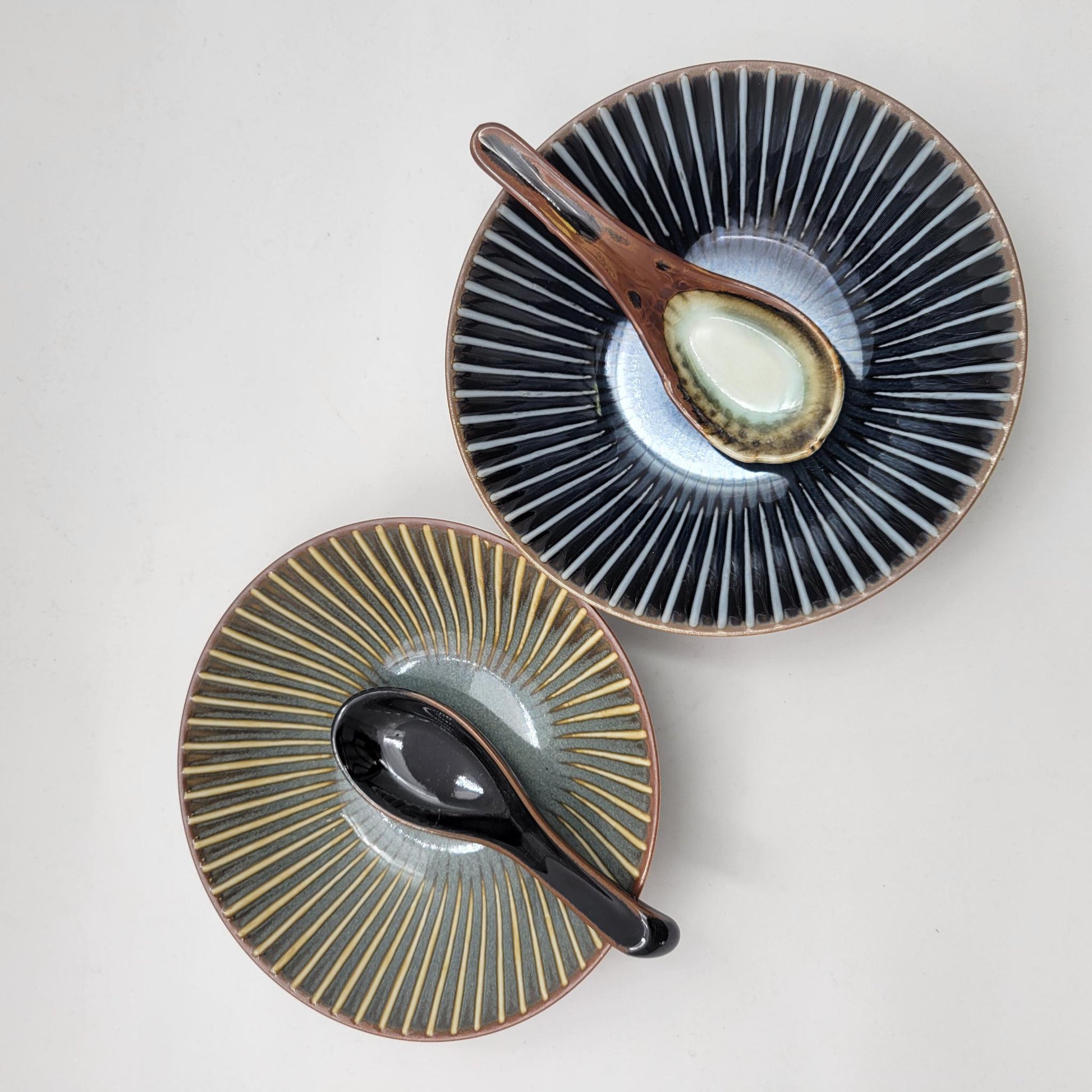 La Cuillère à Ramen Tenmoku en céramique est une pièce élégante qui allie tradition japonaise et esthétisme raffiné. Inspirée des célèbres émaux “Tenmoku”, elle se distingue par son superbe dégradé de couleurs vert et marron, créant un effet profond et nuancé qui rappelle les teintes naturelles de la terre et de la forêt.